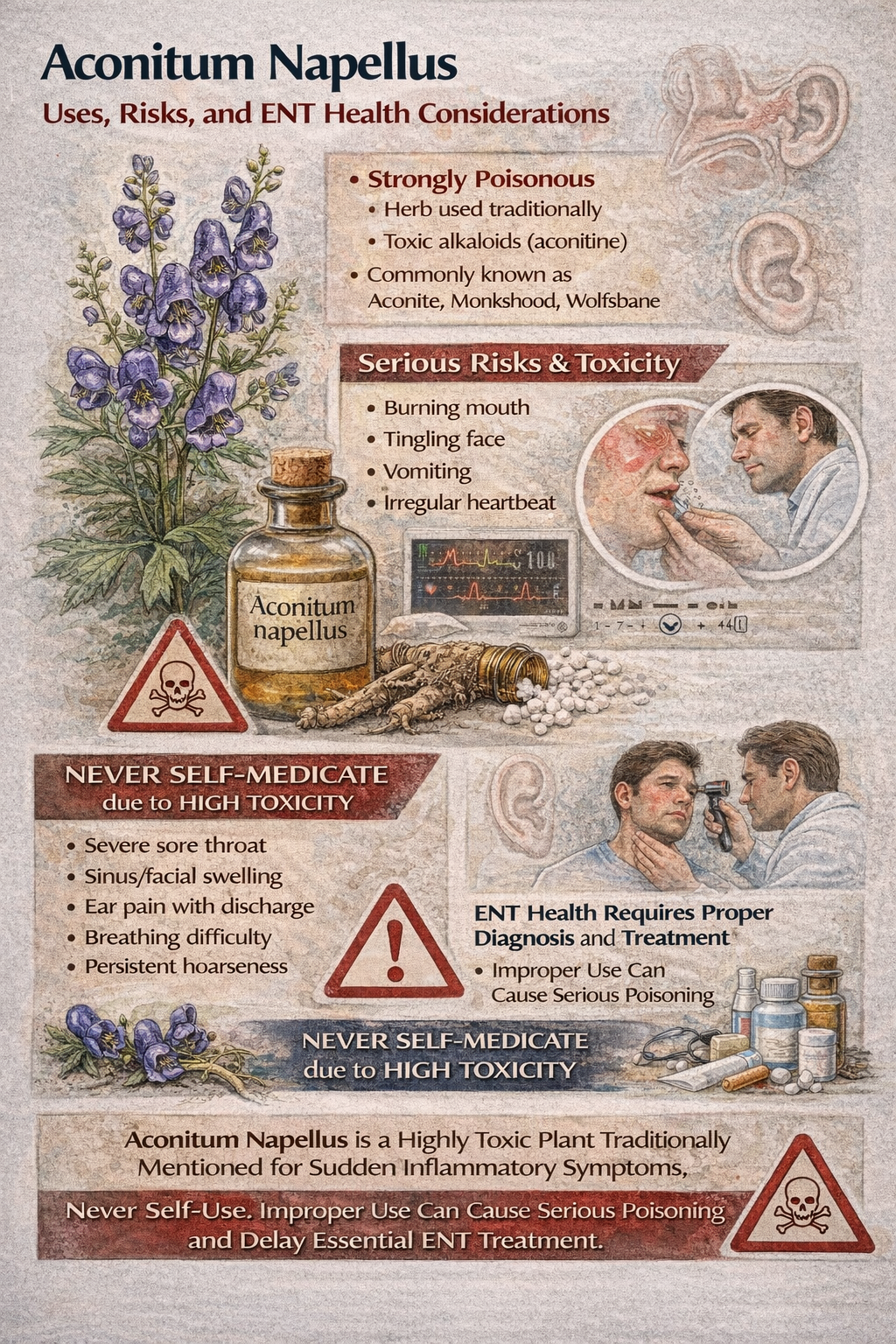 Aconitum napellus is a highly toxic plant traditionally mentioned for sudden inflammatory symptoms. It should never be self-used, as improper use can ...